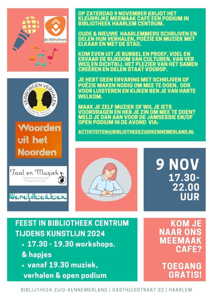 Meemaakcafé: verhalen, poëzie en muziek 06/11/2024 Dit delen:Delen Klik om te delen op Facebook (Opent in een nieuw venster) Facebook Klik om te delen op X (Opent in een nieuw venster) X