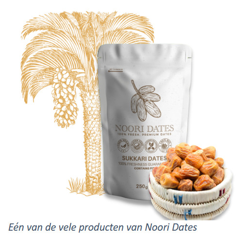 Stil zitten en wachten tot er iets op hem afkomt, dat is bepaald niet de stijl van Noori. Nog maar net ‘geland’ in Denneheuvel bedacht hij dat hij een eigen bedrijf wilde starten. Hij zag dat de ‘wereldwijd beste dadels’, afkomstig uit Saoudi-Arabië, in Nederland amper te krijgen zijn. Dat moest het worden, dadels importeren en verkopen. In Caïro had hij al business administration gestudeerd (niet af kunnen maken helaas), dat kwam van pas. Ondernemerszin is hem ook niet vreemd, dus in no time was Noori Dates opgericht (dates is Engels voor dadels). Vanzelf ging dat zeker niet. In de kelder van Dennenheuvel stond hij bij nacht en ontij dadels te verpakken en afgeleide producten zoals dadelsuiker en dadelkoekjes te maken: ‘Helemaal geen probleem hoor, erg leuk om te doen en ik heb weinig slaap nodig.’